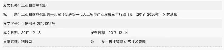工信部印发《促进新一代人工智能产业发展三年行动计划  (2018-2020年)》