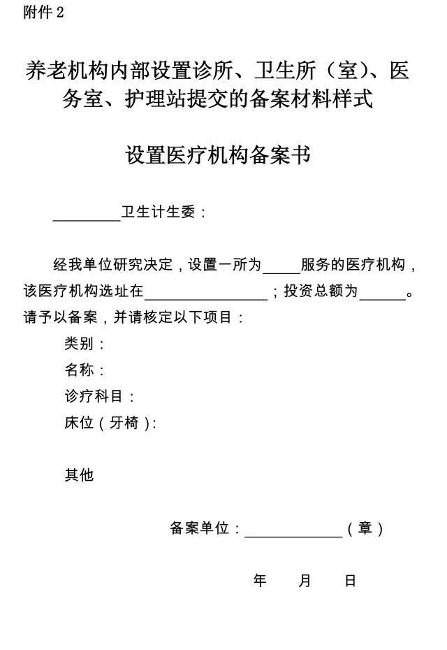 2.养老机构内部设置诊所、卫生所(室)、医务室、护理站的备案材料样式