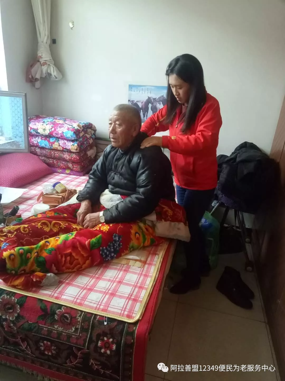 年近80岁的马维科老人,高位截瘫,生活无法自理,独自租住在一个小平房,我中心的工作人员不仅对老人居住的房间进行彻底清理,整理老人杂乱的陈设,还主动为老人按摩泡脚,陪老人聊天,安慰老人。老人当场感动的落下了眼泪,好久都没有如此的陪伴了。