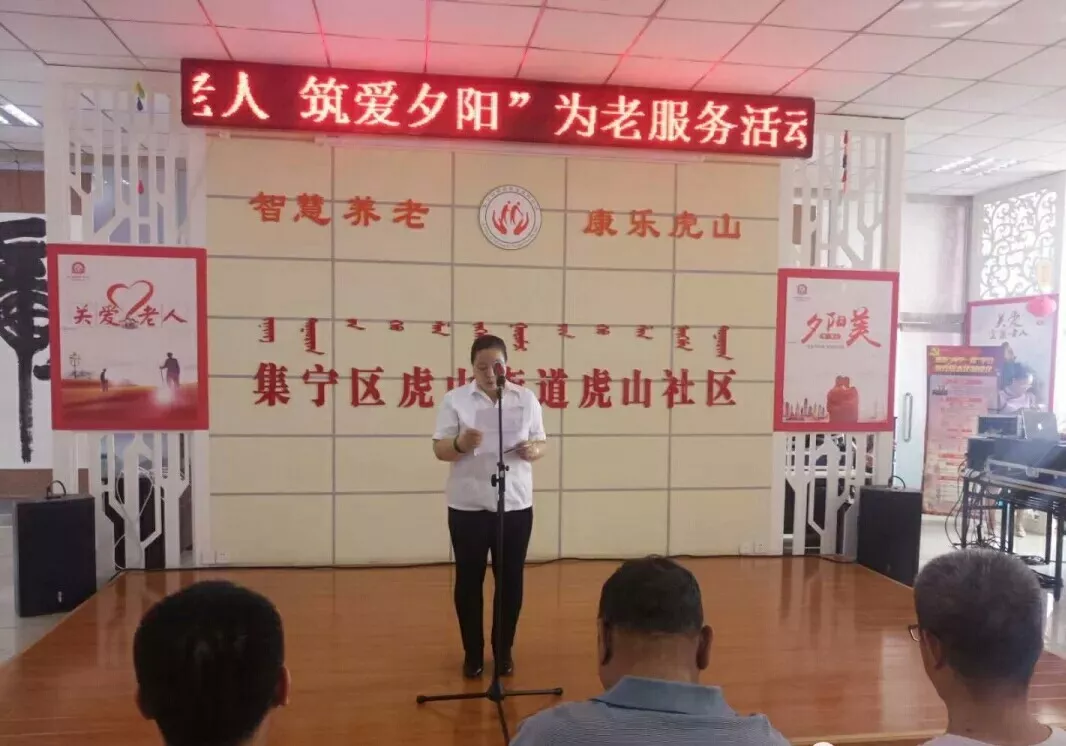 随着老年人物质生活水平的不断提高,老年人的精神文化生活也日益成为新时代老年人的新追求。为了更好地满足和丰富老年人精神文化生活需求,本着“尊老、爱老、敬老、助老、为老”的理念。8月13日上午,乌兰察布市12349党支部带领12349便民为老服务中心联合集宁区虎山街道办事处虎山社区在智慧养老中心举行了“关爱老人 筑爱夕阳”老年活动周启动仪式。