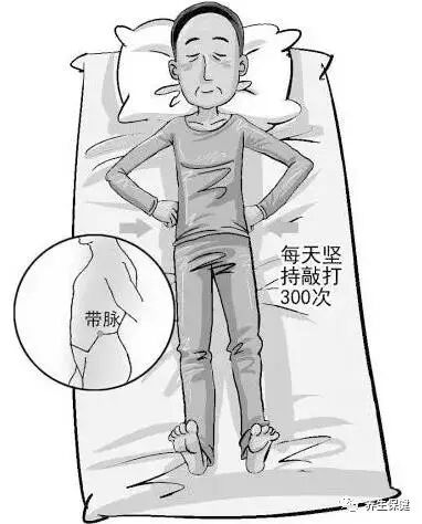 “带脉”有“总束诸脉”的作用,经常敲击能提高排毒能力,改善便秘。腹部“游泳圈”,正是中医“带脉”所绕之处。方法很简单:每晚睡觉前躺在床上,手握空拳,轻捶自己的腰部两侧,每天坚持敲打300次。需要注意的是,敲击时用力并不是越大越好,以身体能承受为宜。