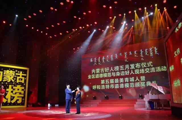 弘扬真善美,传播正能量。5月31日下午,由自治区党委宣传部、自治区文明办、市委宣传部主办,呼和浩特市文明办、呼和浩特市广播电视台承办的内蒙古好人榜五月发布仪式全区道德模范与身边好人现场交流活动,呼和浩特市第五届“最美青城人”暨2015年度呼和浩特市道德模范颁奖晚会在呼和浩特电视台演播厅隆重举行。