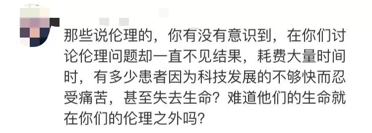 同时,作为在从事医生科研培训的自媒体平台“解螺旋”的医学博士后老谈则在接受《法制日报》记者采访时指出,这是违法违规行为,对这种践踏科研伦理的行为非常愤慨。他向记者介绍说,此次的基因编辑的相关研究和实验违反了不伤害原则和有利原则。