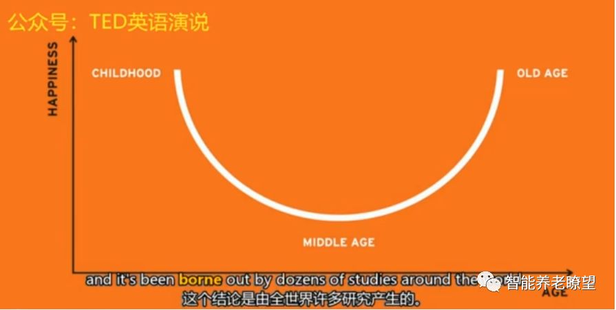 同时,我发现老人们是抑郁沮丧的。因为他们老了,而且很快就会去世。其实人活的越长,越无惧死亡,而且人们在生命最初和最末的阶段是最开心的,这被称作U型幸福曲线。这个结论是由全世界许多研究产生的,你不需要是佛教徒或者亿万富翁,这个曲线说明了年龄自身对大脑的影响作用。