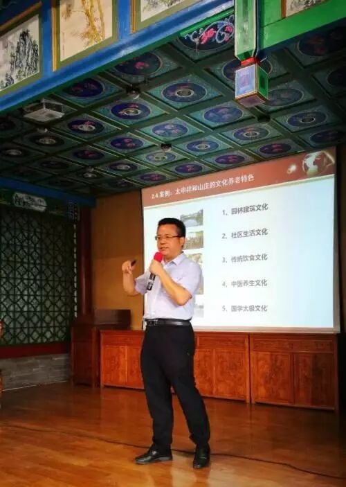 此次学习,选择在中医药医养结合最具代表性的项目,也是文化养老最具代表性的项目,北京太申祥和山庄来鹤轩举行。