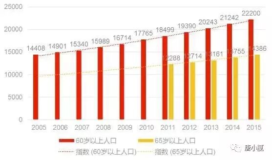截至2015年底,我国60岁及以上老年人口数为2.22亿,占全国总人口的16.1%。根据全国老龄工作委员会预测,到2050年该比例将达到28%,2050年中国老年人口将达到4.8亿,约占全球老年人口的四分之一,中国将成为世界上老年人口最多的国家,老年人口激增,健康养老市场蓝海依旧。