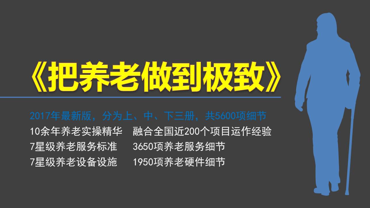 倘若我们在做养老时能够把每一项细节都做好,那么我们也能把养老做到极致。可是,问题是养老有多少个细节,而我们又如何把这项细节做好呢?相信这是许多养老人都困惑的问题。今天,这个问题终于有了答案!《把养老做到极致》这套书,精心总结了3650项服务细节和1950项硬件细节,真正解释了如何把养老做到极致!