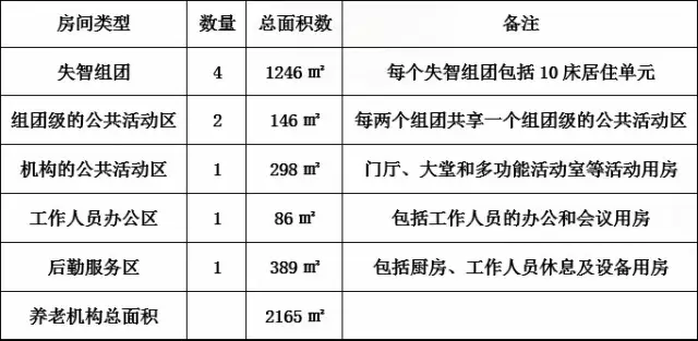 表1:40床居住单元的独立式失智养老人机构面积配比参考