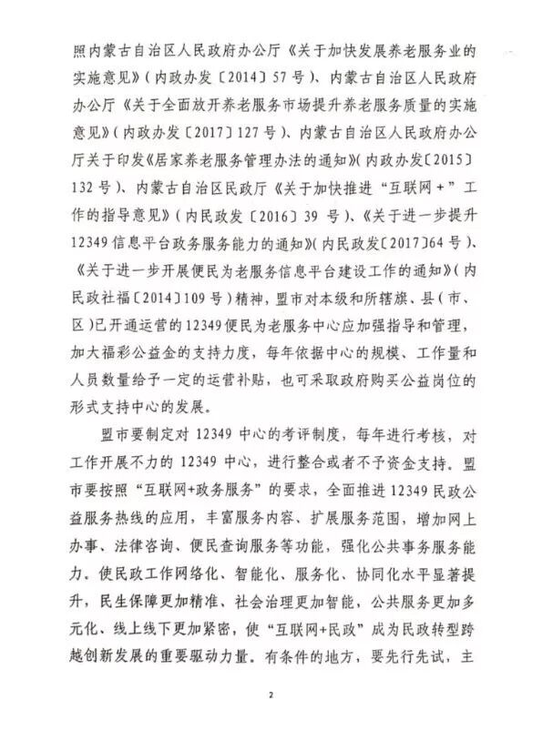 各盟市、旗县12349中心:随着我区各地12349便民为老服务中心发展迅速,服务内容不断增加,自治区民政厅加大了对12349的支持力度。先将自治区民政厅《关于对12349便民为老服务中心给予运营服务费补贴的通知》(内民政办{2018}181号)转发你们,请各中心认真贯彻执行。附件:关于《关于对12349便民为老服务中心给予运营服务费补贴的通知》(内民政办{2018}181号)附件: