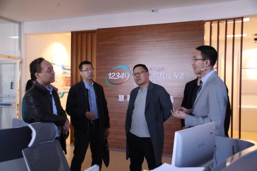 调研组一行听取了工作人员对12349平台建设运营及未来发展规划和12349热线、网站和手机APP客户端运营使用情况的汇报。并观看了平台视频关爱等服务功能的演示。