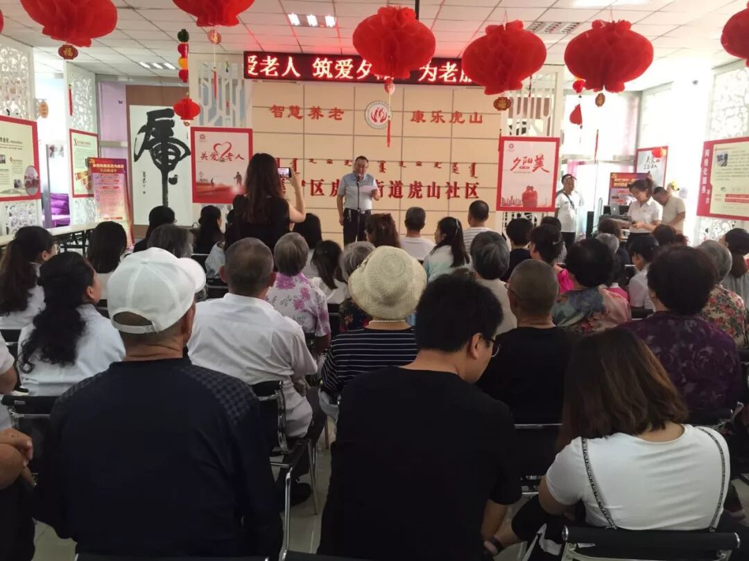 随着老年人物质生活水平的不断提高,老年人的精神文化生活也日益成为新时代老年人的新追求。为了更好地满足和丰富老年人精神文化生活需求,本着“尊老、爱老、敬老、助老、为老”的理念。8月13日上午,乌兰察布市12349党支部带领12349便民为老服务中心联合集宁区虎山街道办事处虎山社区在智慧养老中心举行了“关爱老人 筑爱夕阳”老年活动周启动仪式。