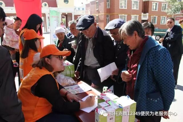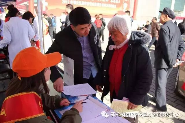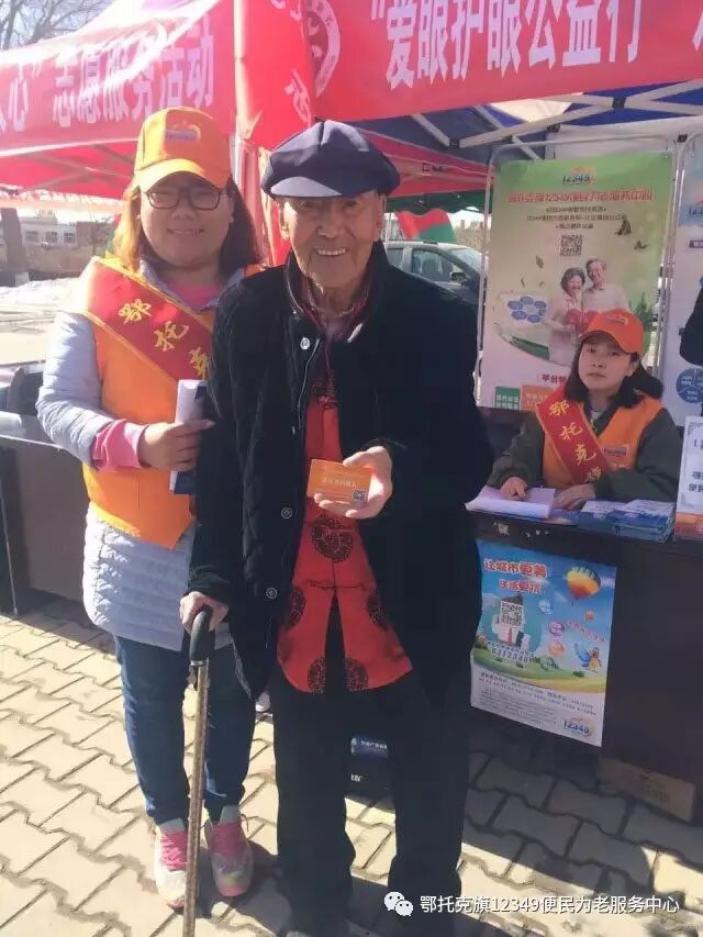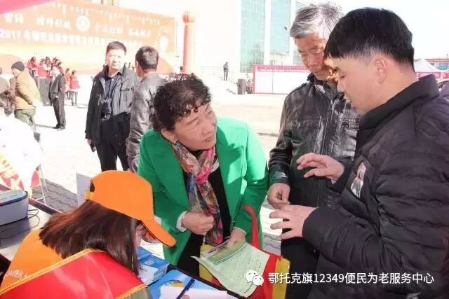 我旗在乌兰广场举行“2017年鄂托克旗学雷锋志愿服务活动月启动仪式”。以‘学习雷锋、榜样引领、全民行动、志愿服务’为主题展开活动!吸引全旗各事业单位及爱心公益组织参与!鄂托克旗12349便民为老服务中心积极参与其中,公益献爱心,并对65周岁的老年人免费发放“老年人特优卡”。
