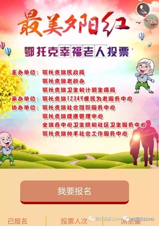 在党的十九大刚刚闭幕,全社会正在认真学习贯彻党的十九大精神之际,鄂托克旗要把“九·九重阳”老年人节前后一个月确定为敬老活动月。旗民政局、老龄办制定出了台开展敬老月活动实施方案,进行全面安排部署,全旗各有关部门,各苏木镇,部分社区、社会组织及老年协会结合实际,开展了系列“尊老、敬老、爱老、助老”活动,使广大老人享受到了经济社会发展的成果,感受到了党和政府的温暖,全旗上下已形成尊敬老年人,关爱老年人的良好社会氛围。鄂旗12349 便民为老服务中心承办开展了“最美夕阳红,鄂托克幸福老人”评选活动,儿女及监护人抓拍老人美丽可爱瞬间参加评选活动,公众投票的方式,以获得票数计算,给前18名参赛作品给予奖励,体现了老年人的幸福感,传递关爱老人正能量。