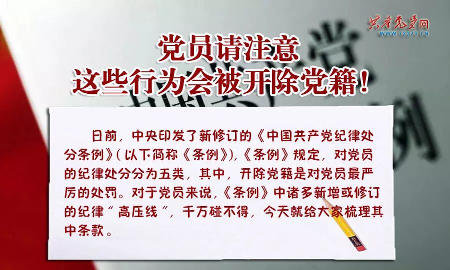《条例》第五十七条规定,组织、参加反对党的基本理论、基本路线、基本方略或者重大方针政策的活动的,造成严重不良影响的,对策划者、组织者和骨干分子,给予开除党籍处分。对其他参加人员或者以提供信息、资料、财物、场地等方式支持上述活动者,未经组织批准参加者,情节严重的,给予开除党籍处分。