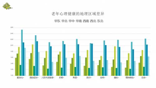 从地理区位上看,华南和华东地区老人的心理健康状况相对较好,西南和西北地区老人的心理问题相对严重。所在地经济越发达,则老人心理越健康。城市老人好于农村老人。